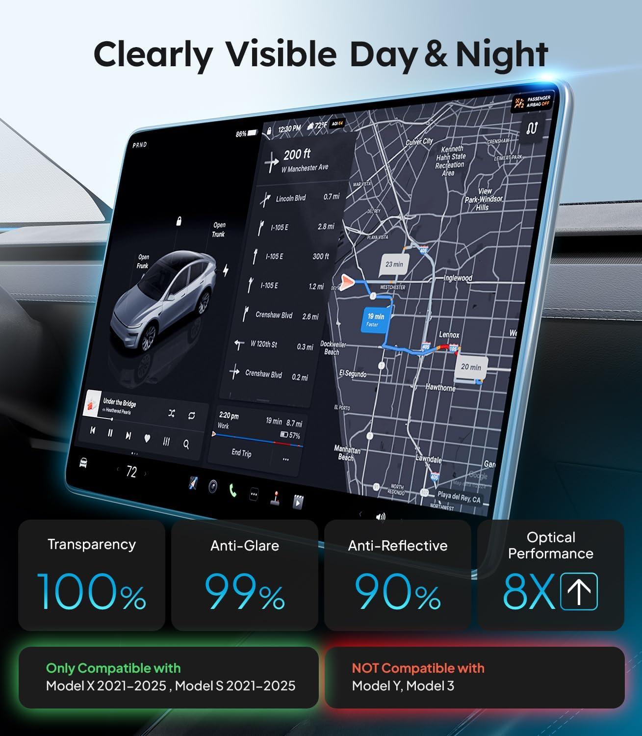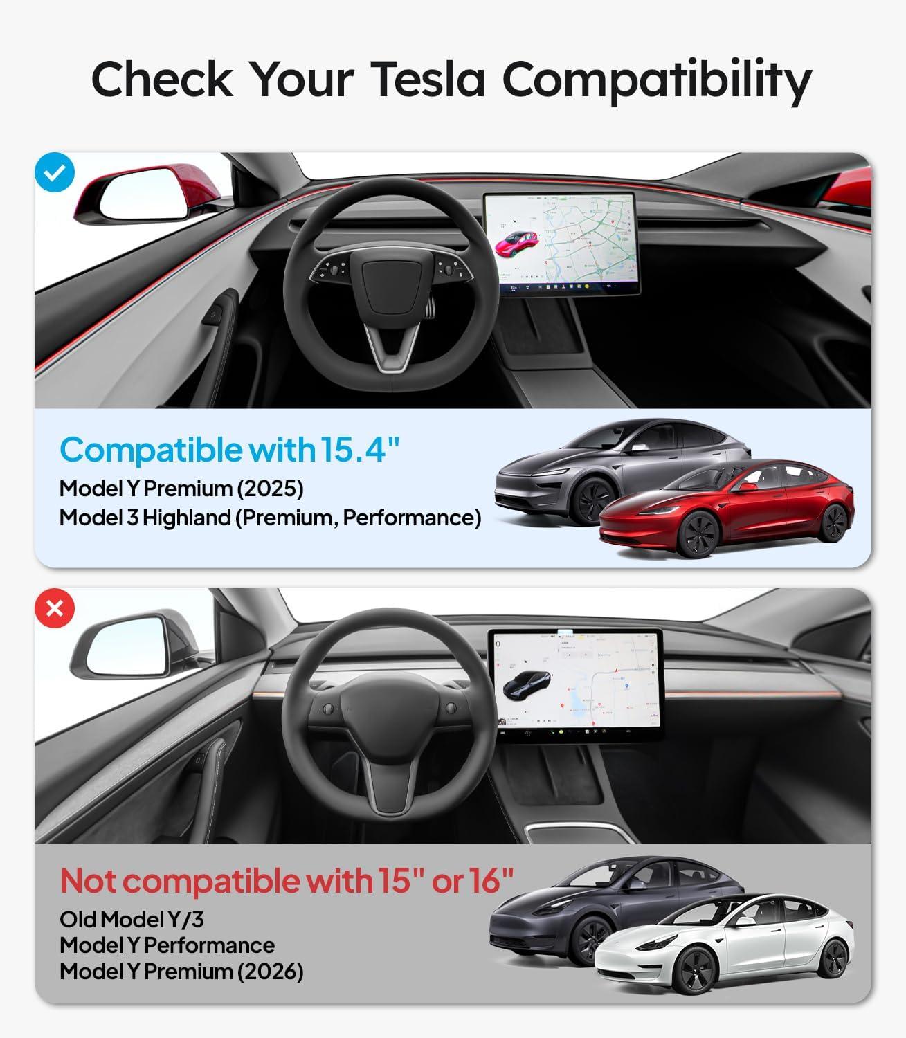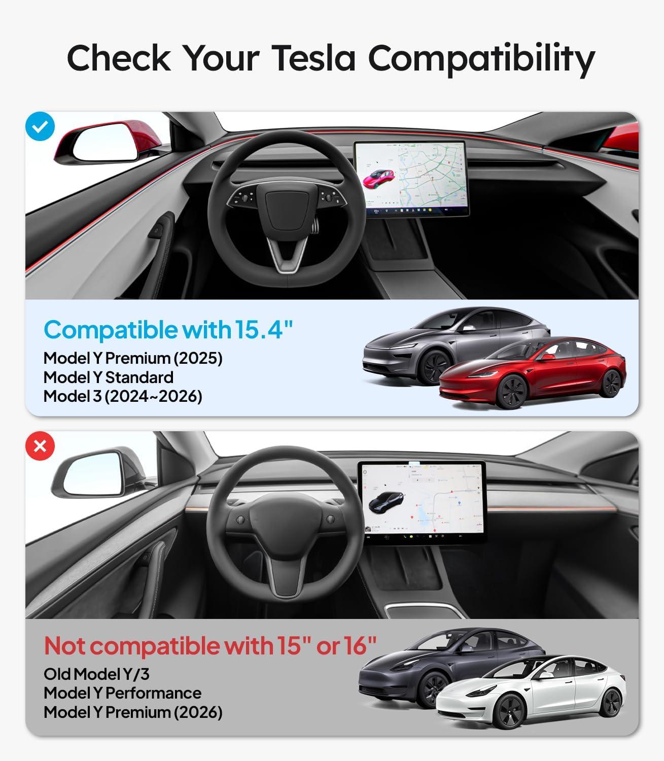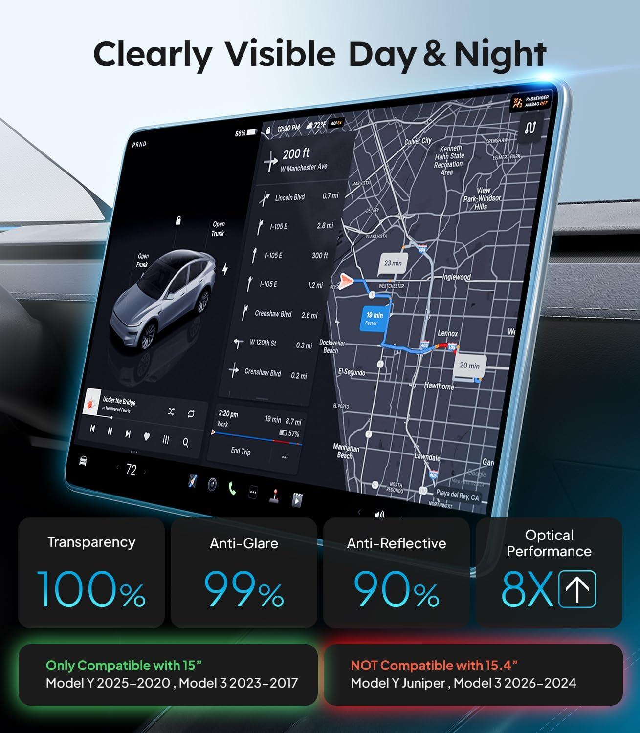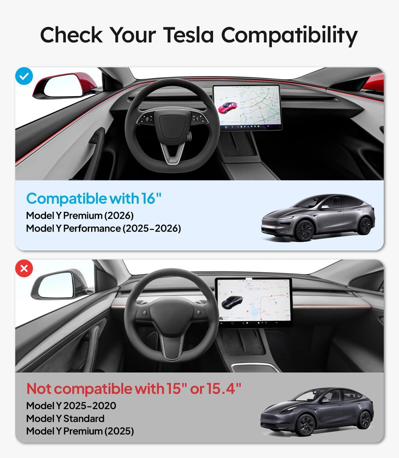【Tailored Design】Set includes 16″ front and 8″ rear screen protectors. Only for Model Y Performance 2025~2026 (16″) & Model Y Premium 2026 (16″).
