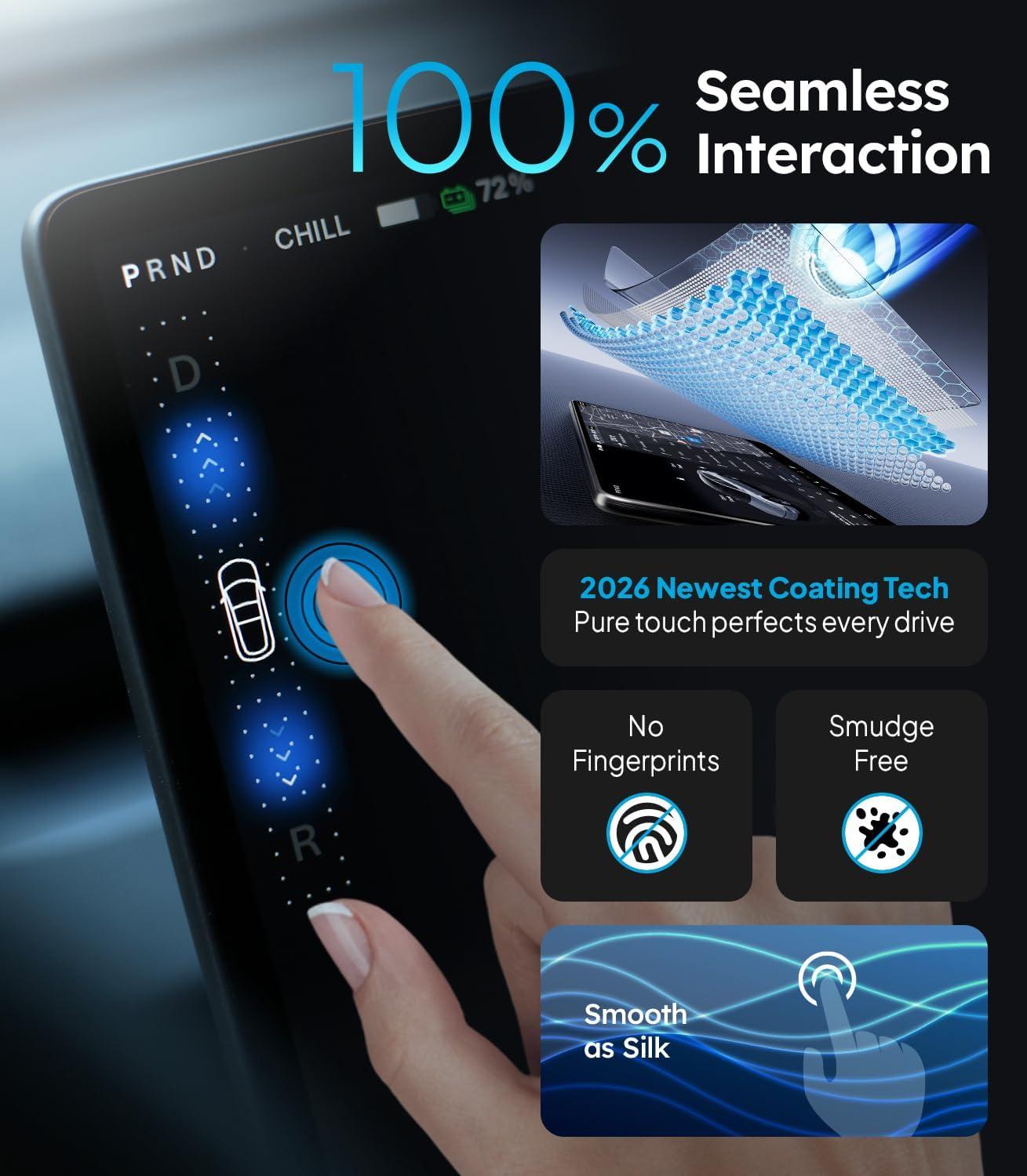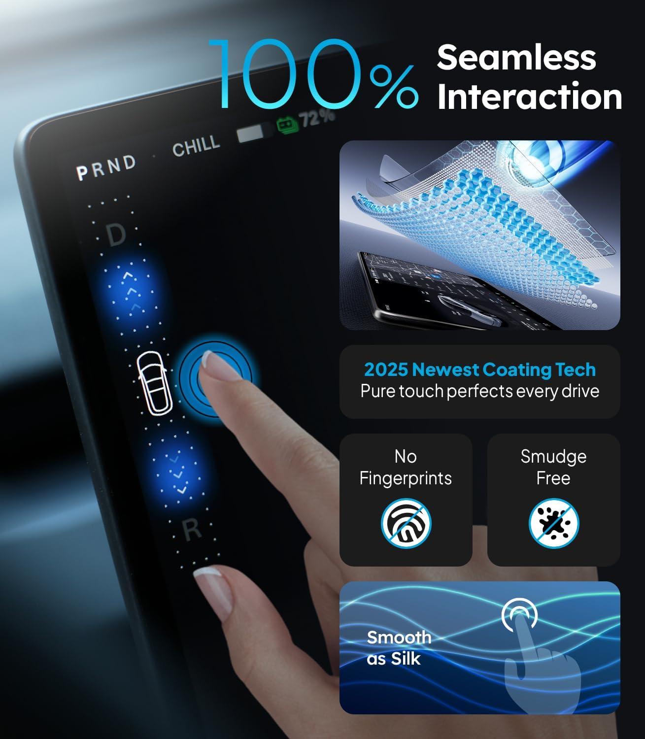 【Smooth Touch, No Fingerprints】Fed up with resistance when swiping your screen and the smudges left behind? Wigoo’s Zero Lag nano-coating will provide you with a responsive touch experience like baby’s skin! The silky-smooth touch ensures your control screen responds just as sensitively as the day you got your Tesla, no matter how many taps and swipes you do