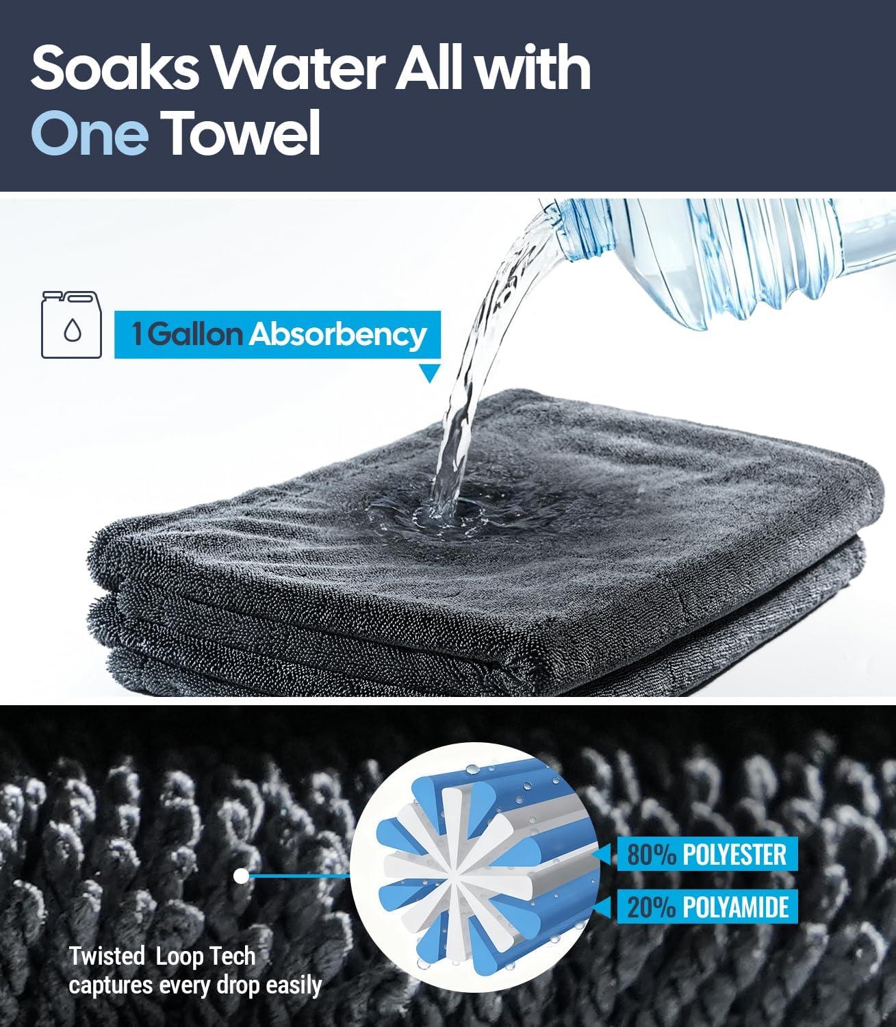 【Professional Showroom Finish】 The advanced Twisted Loop structure maximizes surface contact to boost absorption. This specialized design of micro fiber towel ensures a lint-free, streak-free finish on standard paint, PPF, and ceramic coatings every single time.